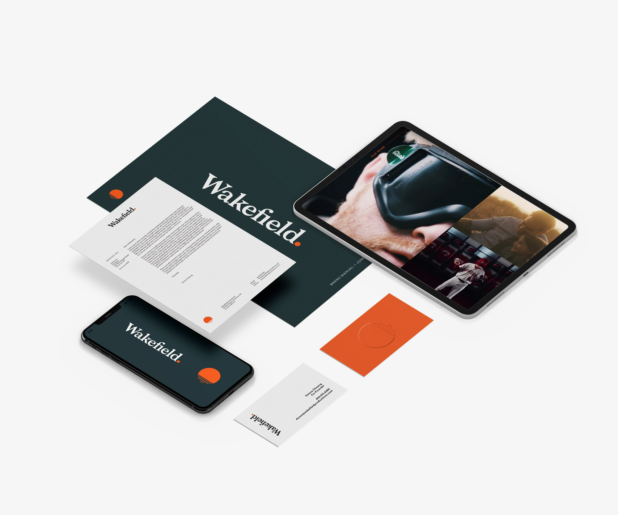 The corporate branding feels simple and intruiging, using beautiful typography and bold colour. It allows their portfolio to shine by showcasing large blocks of images from their work. A logomark was created of a rising sun, representing Wakefield’s desire to awaken audiences to the passion and purpose behind their clients’ business.